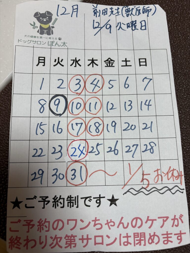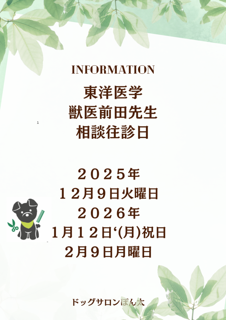 東洋医学獣医師前田先生の日程