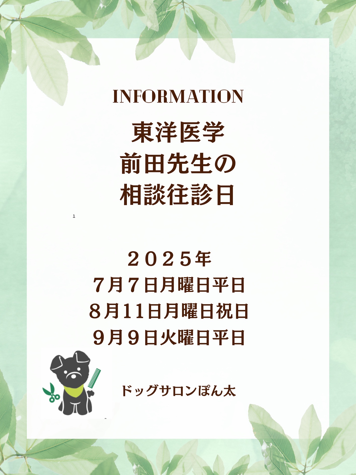 東洋医学獣医師さんの往診日程❤️